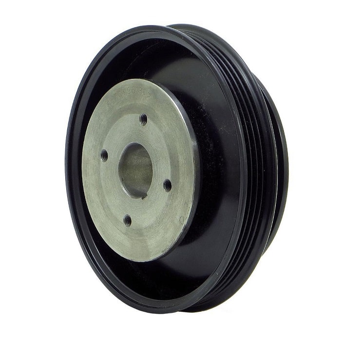 6. خروجی میل لنگ: این قسمت محلی است که پولی درایو متصل شده و گشتاور را از میل لنگ به سایر سیستمهای انتقال نیرو مانند میل سوپاپ و آلترناتور (دینام خودرو) منتقل میکند.